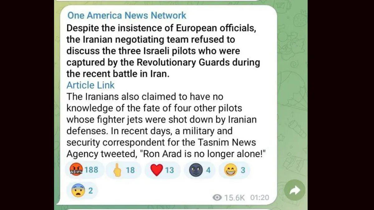 رکنا: رسانههای آمریکایی و فرانسوی از جمله روزنامه لیبراسیون فرانسه تأیید کردند که سه خلبان اسرائیلی توسط سپاه پاسداران انقلاب اسلامی ایران به اسارت گرفته شدهاند. مذاکرات درباره این اسرا با خودداری تیم ایرانی مواجه شده است.