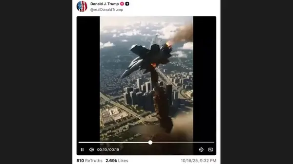 در همین حال دونالد ترامپ، رئیس جمهور آمریکا در واکنش به این اعتراضات، با انتشار ویدئویی توهینآمیز ساخته شده از سوی هوش مصنوعی، خودش را در حالی که تاج شاهی بر سر دارد و پشت یک جنگندهای نشسته است که عبارت «پادشاه ترامپ» بر روی آن نقش بسته، به تصویر کشید که در حال ریختن مدفوع بر سر معترضان است.