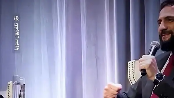 ابومحمد جولانی ملقب به احمد الشرع رئیس‌جمهور سوریه،  پس از آن که خالد ولسفبرگ دیپلمات آمریکایی سریعاً میکروفون را قبل از سقوط آن به دست گرفت، او را تک تیرانداز خطاب کرد.