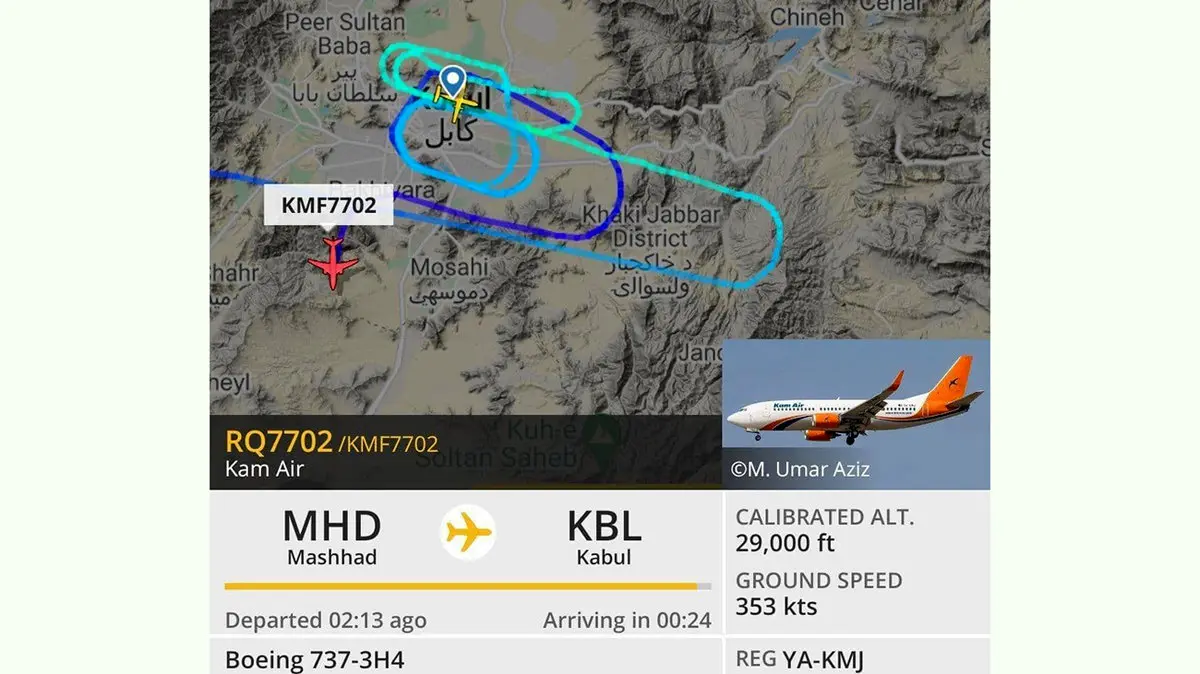 به گزارش رکنا ، پرواز ۷۷۰۲ مشهد به کابل بر فراز آسمان این شهر سرگردان بود. احتمالا مجوز فرود برای این هواپیما صادر نشده است.