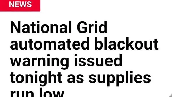 رکنا : با توجه قطعیهای مکرر برق در نقاط مختلف بریتانیا، شبکه ملی برق انگلستان، هشدار سهمیه بندی مصرف انرژی را از امشب صادر کرد.