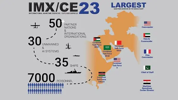 فرماندهی مرکزی نیروهای تروریستی آمریکا(سنتکام) در بیانیه‌ای که در وبگاه آن منتشر شده است، از « رزمایش بین‌المللی دریایی ۲۰۲۳ » میان آمریکا و پنجاه کشور از شرکای آن و سازمان‌های بین‌المللی فعال در «خلیج عربی[خلیج فارس]، دریای عرب، دریای عمان، دریای سرخ، اقیانوس هند و مناطق سواحل شرقی آفریقا» خبر داد.