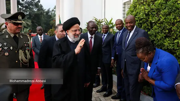 پس از ورود رئیس‌جمهور کشورمان به پایتخت کنیا، «ویلیام سامویی روتو» رئیس جمهور این کشور در محل کاخ ریاست‌جمهوری به صورت رسمی از آیت الله سید ابراهیم رئیسی که در رأس هیئت عالی‌رتبه اقتصادی و سیاسی به کنیا سفر کرده است، استقبال کرد.