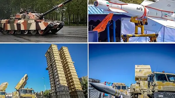 رادار سامانه موشکی تلاش، سکوی پرتاپ سامانه موشکی تلاش، رادار سامانه15خرداد (جوشن)، سکوی پرتاب سامانه 15خرداد، صیاد تک خودرویی، موشک صیاد3و4، خودروی TM سامانه دماوند، موشک اس 200 منصوب بر روی سکو، رادار هادی سامانه مرصاد، رادار کاوش سامانه مرصاد، سکوی پرتاب فایر از کن مرصاد 16، سامانه موشکی دزفول، سامانه موشکی نواب، سامانه مجید، رادار کاشف، رادار جلیلوند، سامانه ی راداری کاوش، سامانه MSSR، سامانه تروپو ارتباطی، سامانه ارتباطی مفتاح، پهپاد کرار، پهپاد انتحاری