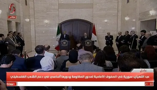 وی همچنین با اشاره به رایزنی‌های خود با بشار اسد رییس جمهور سوریه و فیصل المقداد وزیر امور خارجه این کشور عربی، تصریح کرد: سوریه به عنوان یکی از خطوط مقدم در محور مقاومت، همواره نقش اساسی در حمایت از مردم فلسطین و محور مقاومت ایفا کرده است.