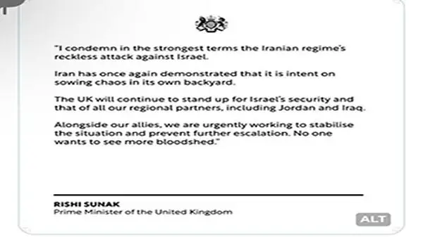 بیانیه شدیداللحن انگلیس علیه ایران/ "حمله جسورانه رژیم ایران علیه اسرائیل را قویا محکوم می‌کنیم"