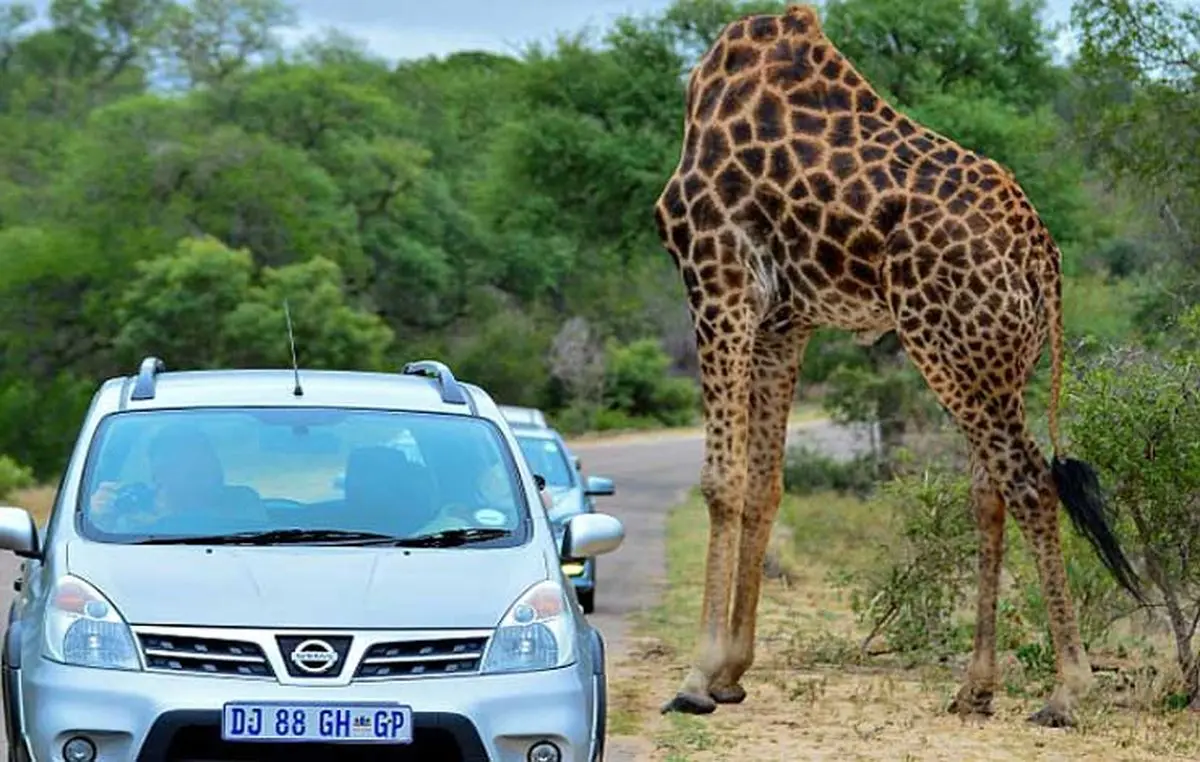 رکنا: گردشگر خارجی جنگلهای آفریقای جنوبی در لحظهای ناب موفق به شکار تصویر زرافه با سر و گردن ناپیدا شده است.