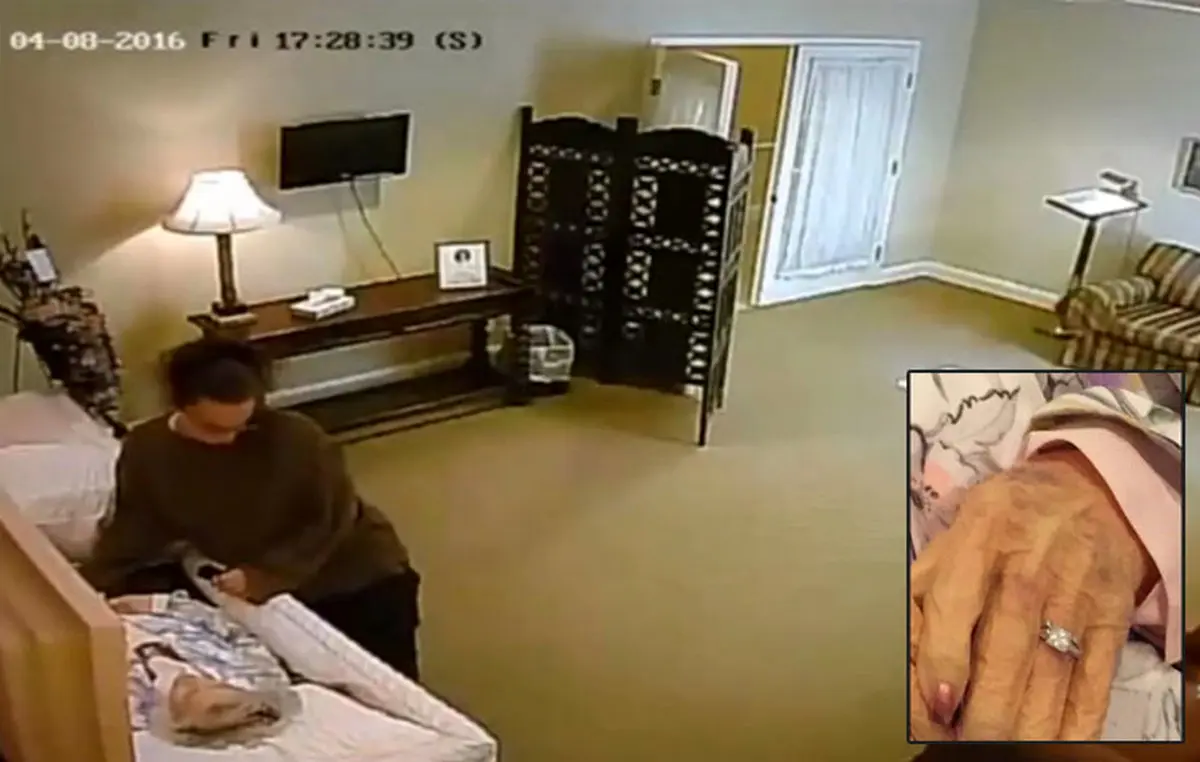 فیلم گرفته شده نشان می‌دهد این زن زمانی که در تابوت باز مانده در جریان شلوغی تشییع جنازه تمامی سعی خود را می‌کند تا حلقه‌ای با نگین برلیان را از انگشت مرده دربیاورد.