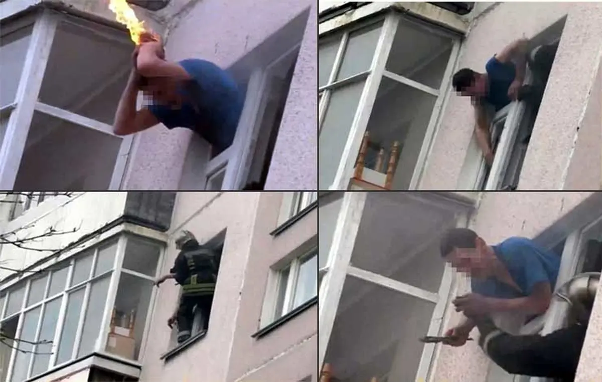 این لحظات وحشتآور ادامه داشت تا اینکه یکی از آتشنشانان خود را به پنجره رساند و مرد روس را با تلاش فراوان به داخل کشید همزمان دیگر آتشنشانان شعلههای روی سرش را خاموش کردند.