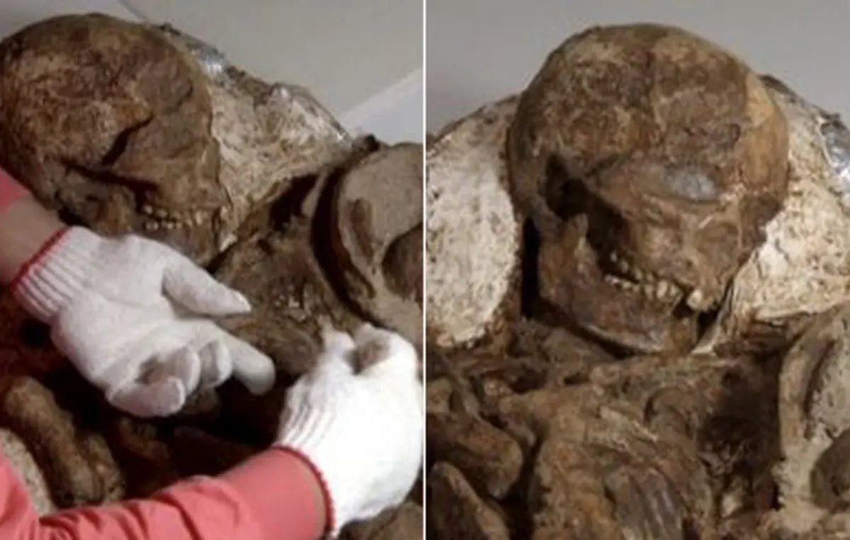 کشف فسیل 4800 ساله یک بچه در آغوش مادر + عکس