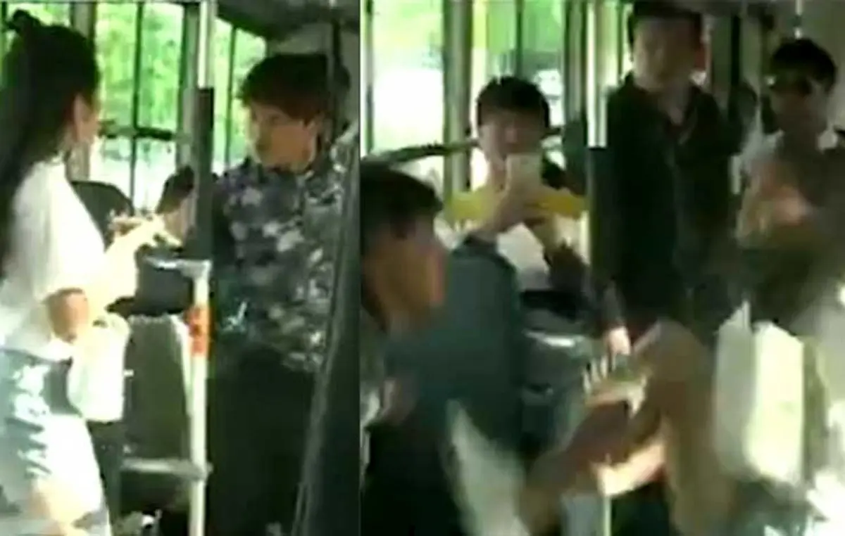 کتک خوردن یک مرد از زن مسافر در اتوبوس + فیلم