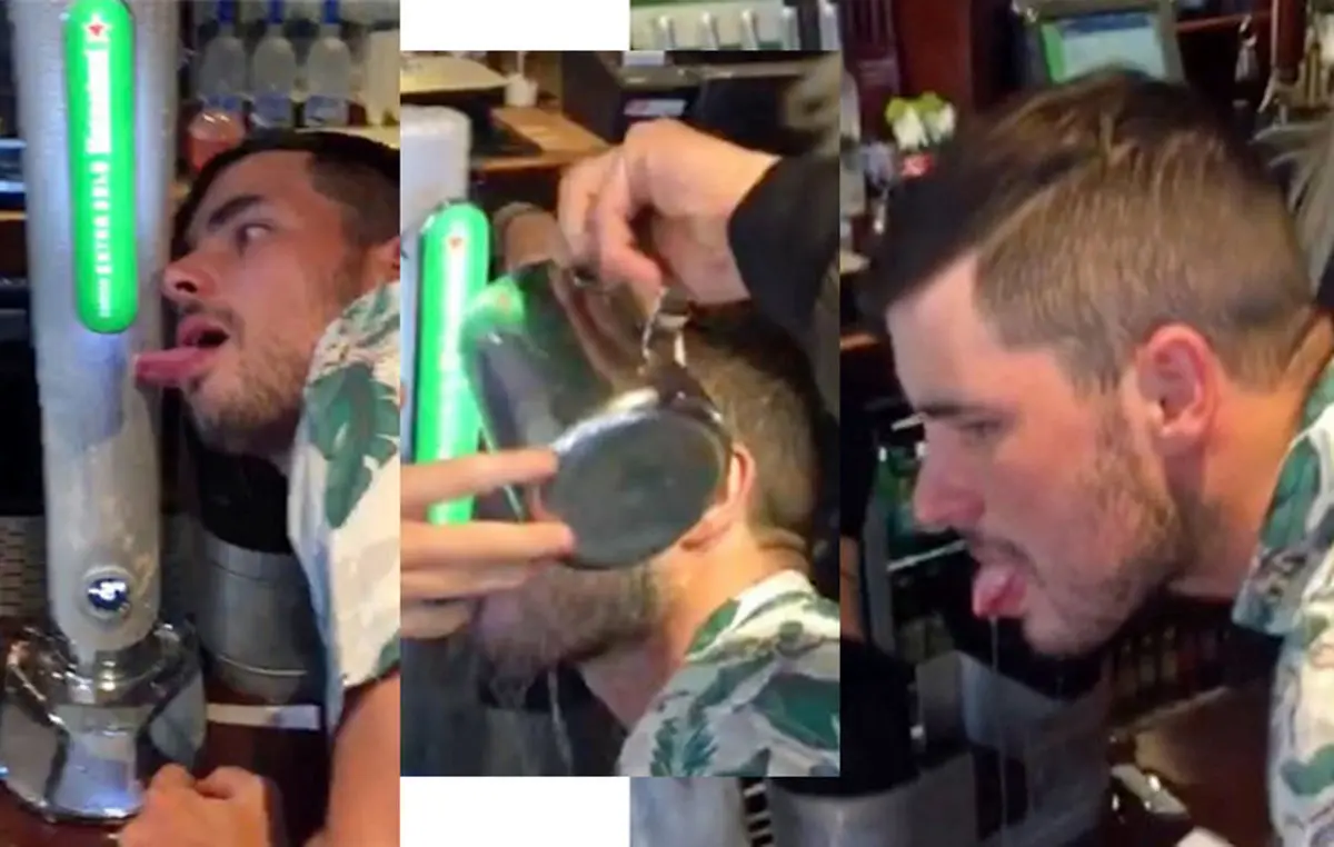 ریس لوینسون در حال خوشگذرانی با دوستانش بود که با لیس زدن بدنه یخ زده فلزی نوشیدنی زبانش به بدنه این پمپ چسبید.