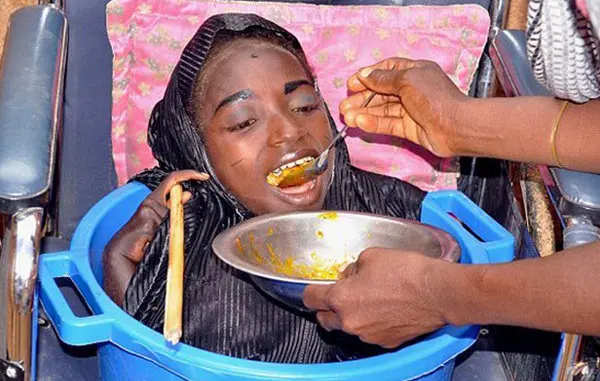 رکنا: دختر جوان نیجریهای به خاطر شرایط جسمیاش مجبور است در یک تشت زندگی کند.