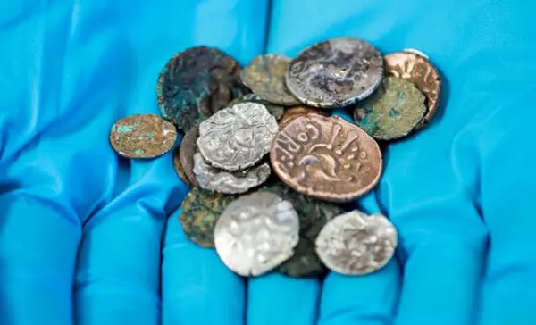 این گنجینه شامل سه سکه از دوران روم باستان و 23 سکه طلا و نقره از عصر آهن را شامل میشود