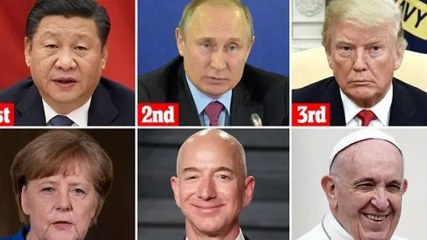 بعد از این افراد آنگلا مرکل صدراعظم آلمان در جایگاه چهارم قرار گرفته است. او همچنین قدرتمندترین زن دنیا است. بعد از او به ترتیب جف بزوس مدیر آمازون، پاپ فرانسیس، بیل گیتس، بن سلمان شاهزاده سعودی، نخست وزیر هند نارندرا مودی و لاری پیج موسس گوگل در جایگاه پنجم تا دهم قرار دارند. امانوئل مکرون رئیس جمهور فرانسه با جایگاه 12م برای اولین بار وارد این لیست شده است و بعد از او مارک زاکربرگ و ترزا می در ردههای 13 و 14م جای دارند.