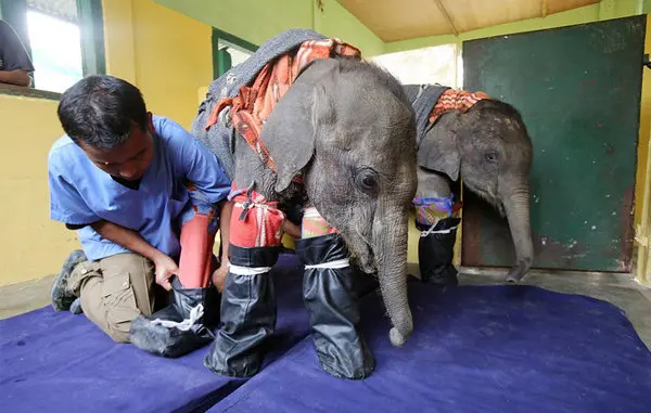 دکتر «پانجیت باسوماتاری» دامپزشک میگوید: پتو، جورابها و لباسهایی که برای هر 2 بچه فیل ساخته شده آنها را گرم نگه میدارد. آنها در وضعیت مناسبی هستند.