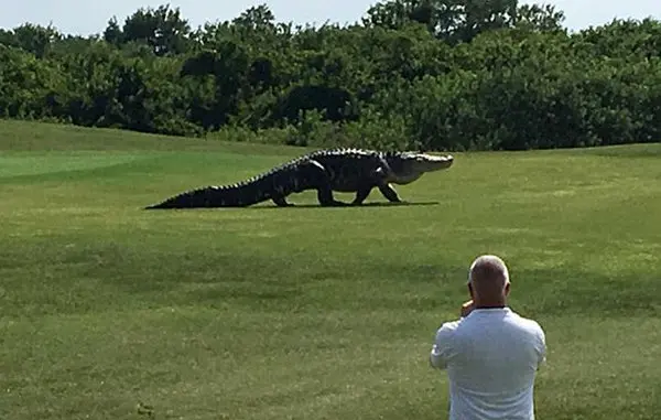 حضور یک کروکودیل غول‌پیکر در میان زمین گلف‌بازان فلوریدا بازی آنها را برای مدتی به تأخیر انداخت.