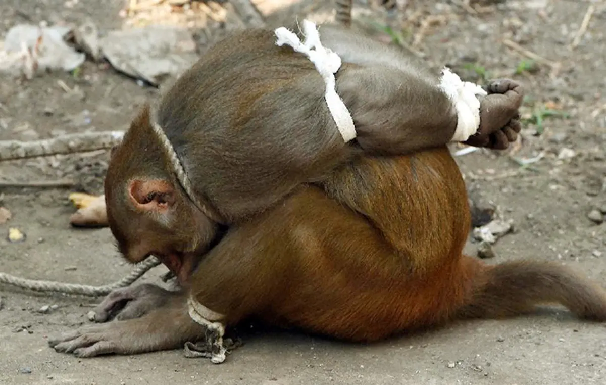 تصویر جالبی که در این وضعیت از میمون اسیر گرفته شده در لیست عکس‌های تماشایی جهان قرار دارد.