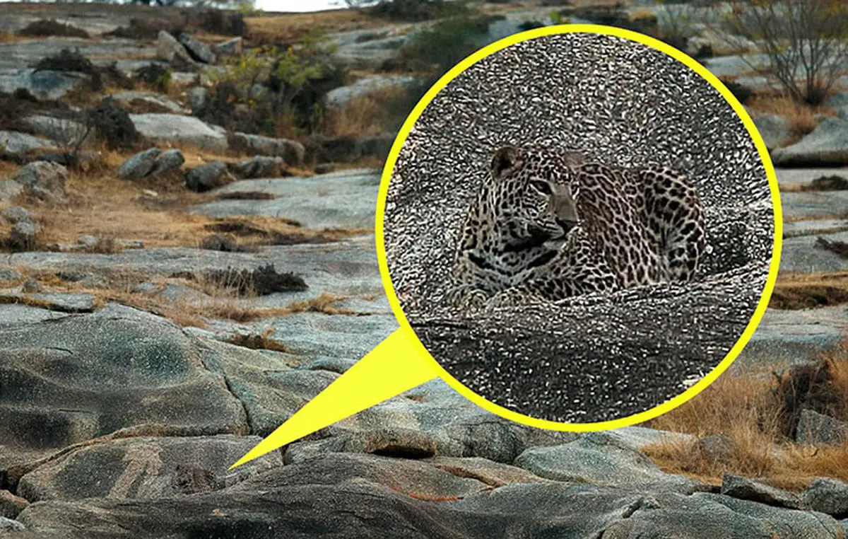 پلنگ درنده ای روی تخته سنگی در راجستان هند استتار کرده که توسط "سودیر شیوارام" عکاس حیات وحش سوژه عکاسی می شود. به اعتقاد این عکاس 43 ساله این مکان به دلیل صخره های اش مورد پسند پلنگ هاست و یک زیستگاه محبوب برای این جانداران به شمار می آید. جالب است جایی غیرقابل باور پلنگی که کمین کرده با رعایت فاصله توسط دوربین این عکاس شکار شده است. پیدا کردن شکارچی درنده در این عکس واقعا دشوار است و با دقت و تمرکز می توان بین پلنگ و صخره تمییز قائل شد. حتی برخی کاربران تصور کرده اند که در عکس حیوانی وجود ندارد. به اعتقاد سودیر این پلنگ که جز حیوانات تطبیقی بشمار می آید به خوبی در زیستگاه پنهان شده است.