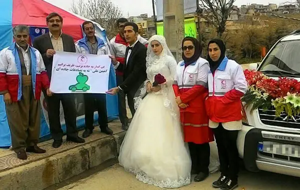 ابتکار جالب 2 نجاتگر کردستانی در لباس عروس و داماد