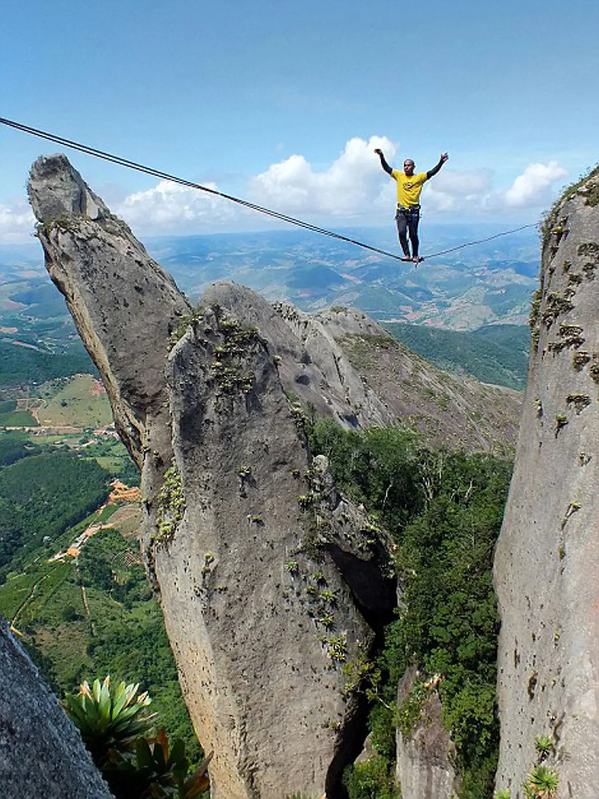 رکنا: «رجینالدو گومز» بندباز 34 ساله در حرکتی محیرالعقول در ارتفاع 500 متری بدون داشتن تجهیزاتی از بین دو کوه در برزیل با طنابی باریک گذشت و باردیگر رکوردزنی کرد.
