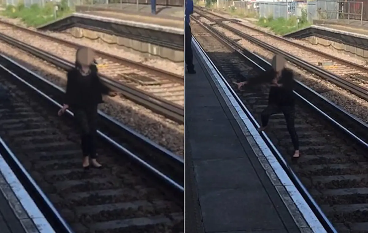 این اتفاق که در یکی از ایستگاه های قطار انگلستان اتفاق افتاد ، باعث ترس و وحشت همگان شد. این زن درهمان حالت بسیار مراقب بود که دچار برق گرفتگی ناشی از ریل های قطار نشود که سر انجام توسط ماموران ایستگاه به لبه ایستگاه کشیده شد. برای ورود به کانال تلگرام ما کلیک کنید.
