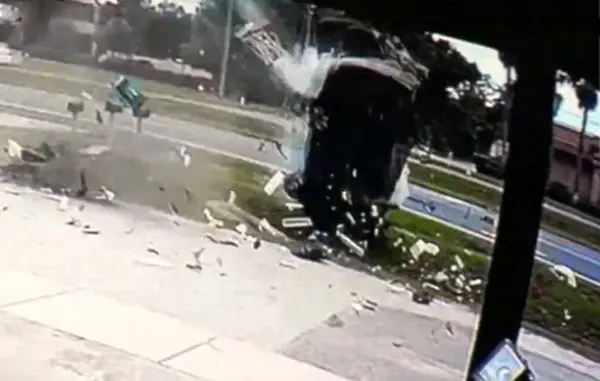 این ویدئو که در دوربین های مدار بسته ضبط شده است تصادف وحشتناکی را نشان می دهد که درآن راننده اهل فلوریدا نمی تواند ماشین را کنترل کند و درپی آن تصادف وچرخش های پی در پی ماشین موجب آسیب دیدگی شدید شد و تصادف وحشتناکی شد.