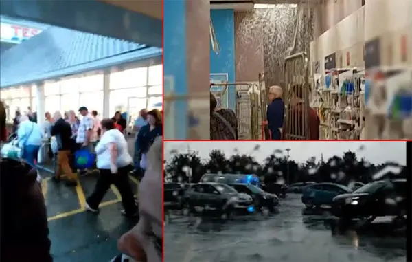 بارش باران سیل آسا از سقف بزرگ ترین فروشگاه/ مشتریان وحشت زده از فروشگاه خارج شدند
