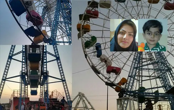 مادر و فرزند چهار ساله وی در واگن مربوط به چرخ فلک در حال حرکت بودند که مادر و فرزند از واگن به سمت پایین سقوط کردند.