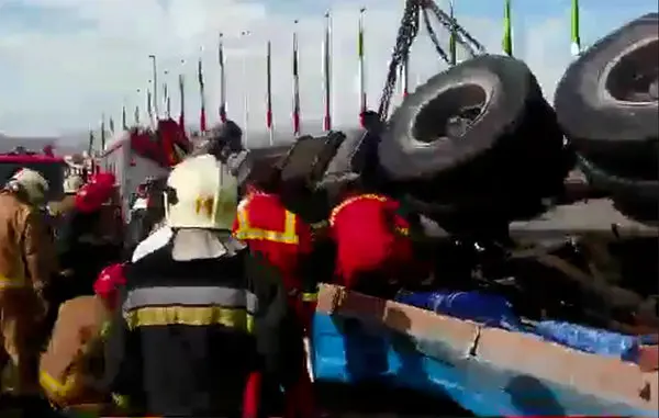 ساعت ١٦:١٥ دقیقه امروز یکشنبه ٢ خرداد ماه امسال ماموران آتش نشانی در شرق تهران در جریان واژگونی تریلر ١٨ چرخ روی پل رسالت در مسیر جاده دماوند قرار گرفتند.