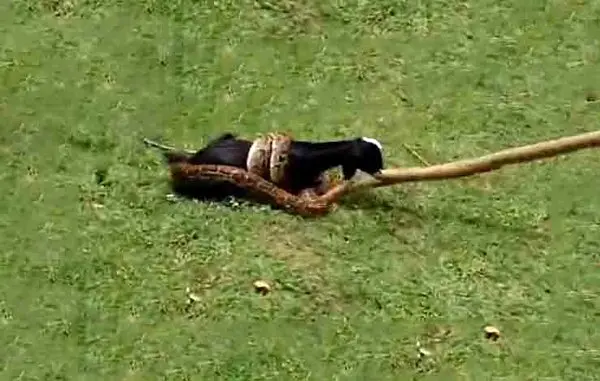 در این ویدئو که در کشور هند ضبط شده است مشاهده می کنید که در یکی از روستاها یک مار پیتون قصد شکار یک بز را داشت که ساکنین روستا با ضربات چوب بز را نجات دادند.
