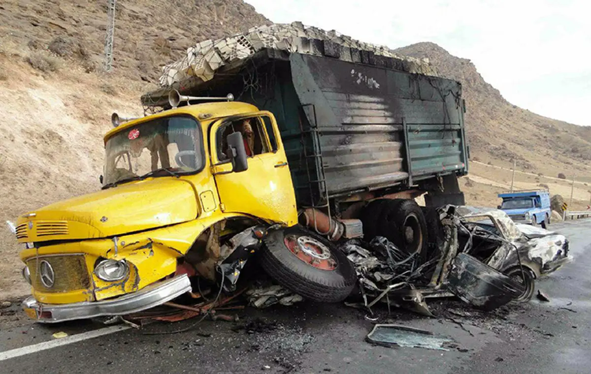 پیکان زیر کامیون له شد و در آتش سوخت+تصاویر