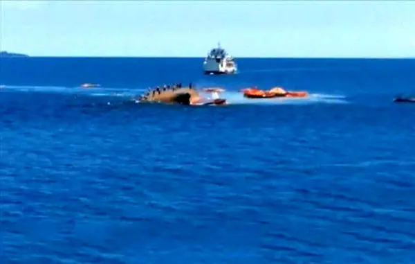 فیلم غرق شدن یک کشتی با 71 مسافر دریایی