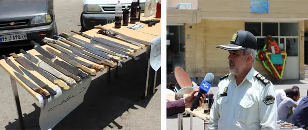 این مقام مسئول عنوان داشت: در بازرسی از مخفیگاه افراد دستگیر شده بیش از 100 قبضه سلاح سرد شامل قمه ، قداره، شمشیر، زنجیر و چاقوهای نامتعارف و مقادیری مواد مخدر به همراه آلات و ادوات مصرف این مواد کشف شد.