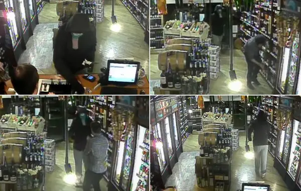 دوربین‌های مداربسته مستقر در فروشگاه از لحظات سرقت دزد فیلی فیلم گرفته است.