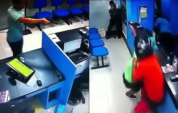 در این حمله افسر پلیس با شلیک چند گلوله با سارقان مسلح روبه‌رو می‌شود، هر 2 دزد برای نجات جان خود از شلیک‌های متعدد افسر، خود را پشت پیشخوان دفتر فروش پنهان کرده و یکی از آنها در فرصتی مناسب فرار می‌کند.