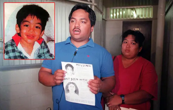 پدر و مادر پسر 6 ساله در سال 1998 درحال پیگیری مفقود شدن پسرشان