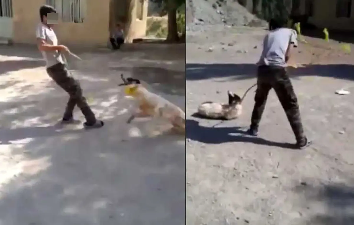 هفته گذشته فیلمی تکاندهنده در تلگرام و شبکه های مختلف انتشار یافت که نشان می داد پسر با بیان اینکه سگی 700 هزار تومان به وی ضرر زده است طنابی دور گردن وی انداخته و از تیر دروازه فوتسال او را دار می زند.