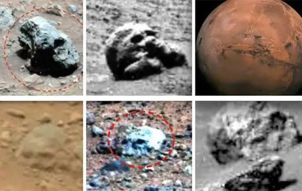 «اسکات سی‌وارینگ» سردبیر سایت و بلاگ بشقاب‌پرنده‌ها ادعا کرده است که تصاویر خیره‌کننده جمجمه انسان طی چند سال گذشته نادیده گرفته شده است و در کنار جمجمه یک تکه استخوان نیز وجود دارد. این تصاویر بوسیله فضاپیمای «کنجکاوی» گرفته شده است.