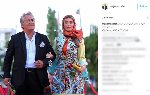 رکنا: مجید مظفری به همراه دخترش نیکی مظفری در جشن حافظ شانه به شانه هم وارد فرش قرمز شدند. مجید مظفری با انتشار این عکس نوشت: همراه با دختر خوش قلب و نازنینم در جشن حافظ
