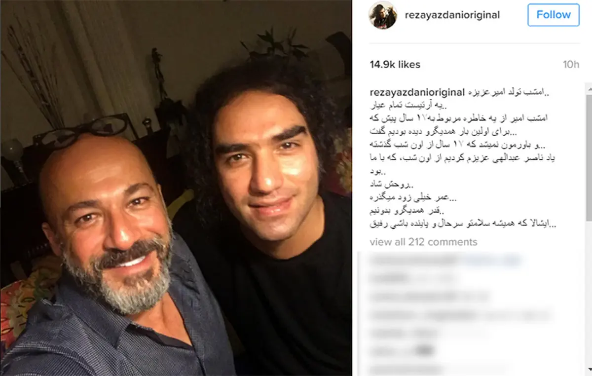 رکنا: رضا یزدانی از رفاقت 17 ساله خود با امیر آقایی گفت و با انتشار این عکس تولد این هنرمند را تبریک گفت و نوشت: