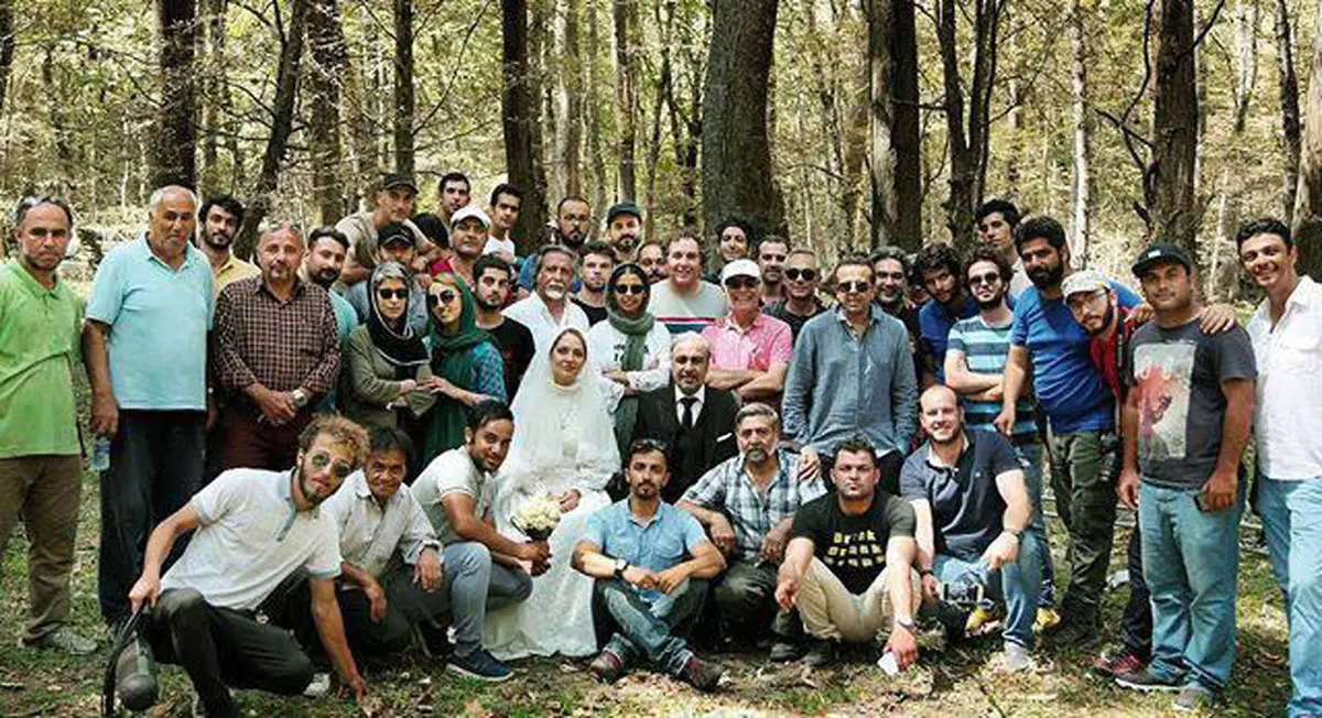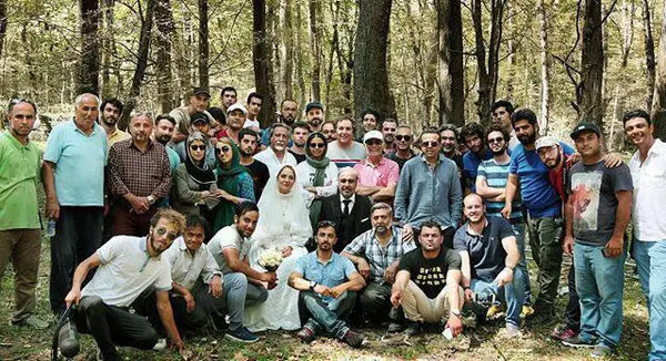 در این عکس مهناز افشار و رضا عطاران بازیگران اصلی فیلم نهنگ عنبر 2 در جنگل های مازندران ازدواج می کنند.