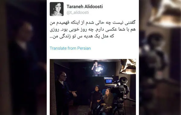 رکنا: ترانه علیدوستی بعد از دیدن عکسش با کیارستمی توییتی را در توئیتر خود منتشر کرد و نوشت: گفتنی نیست چه حالی شدم از اینکه فهمیدم من هم با شما عکسی دارم. چه روز خوبی بود. روزی که مثل یک هدیه است توی زندگی من...