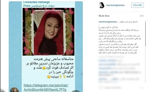 رکنا: نسرین مقانلو نسبت به درج خبر دروغین درگذشتاش واکنش تندی نشان داد و نوشت: