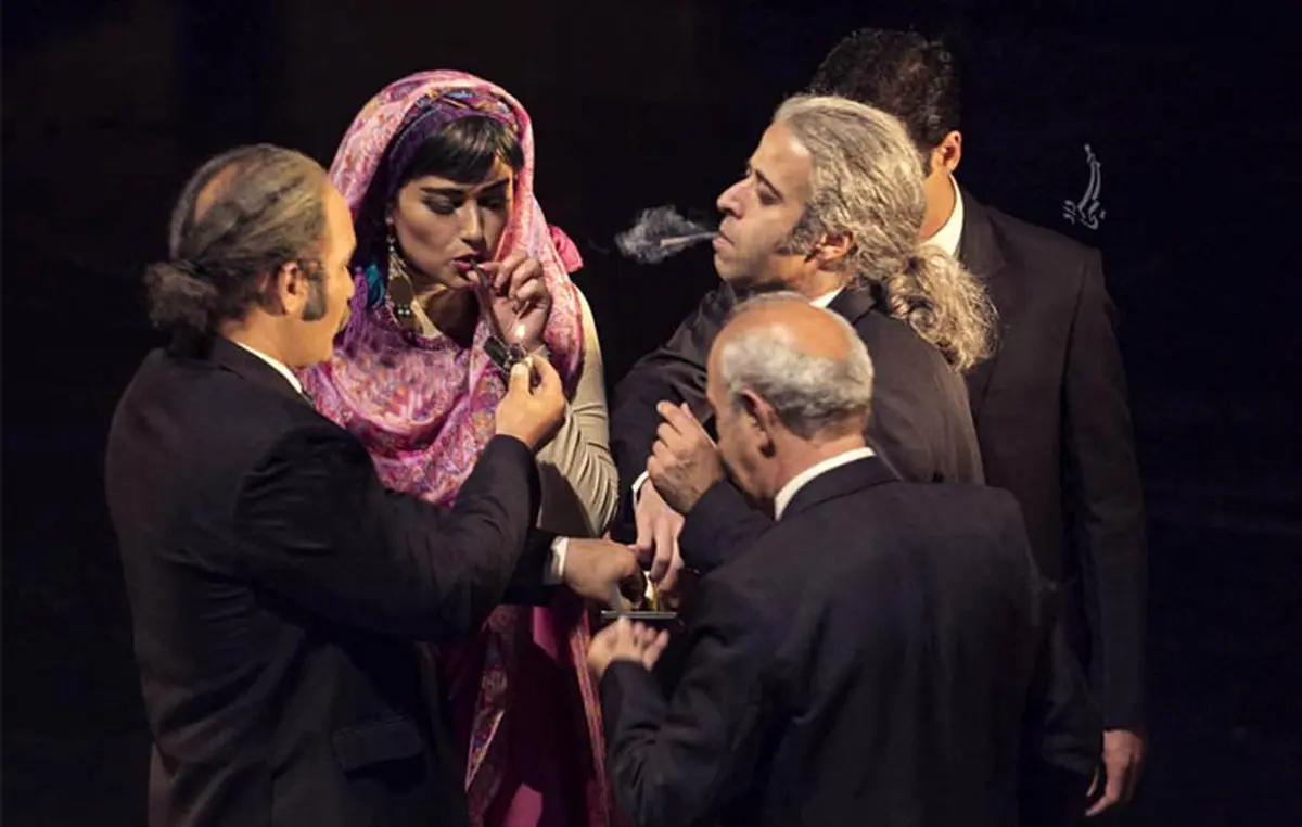 این تصویر مربوط به نمایش سقراط است. این نمایش که یکی از پرمخاطبترین نمایشهای سال گذشته به شمار میرود با بازی فرهاد آئیش، لادن مستوفی، بهناز نازی، ایوب آقاخانی، یعقوب صباحی، کتانه افشارینژاد، نقی سیف جمالی، سیاوش چراغیپور، بهار نوحیان، بهمن عباسپور، رضا جهانی، بهنام شرفی، سروش کریمی نژاد، مجتبی پیرزاده، مهرداد خانی، یاسمن کاکایی، راشین دیدنده، روژین رحیمی، مجید قادری، بهمن ناصری و محمد نژاد بر روی صحنه رفته است.