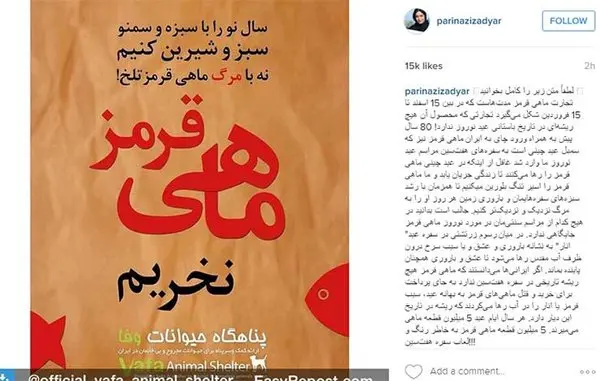 رکنا: پریناز ایزیار از هموطنان خواست ماهی قرمز نخرند