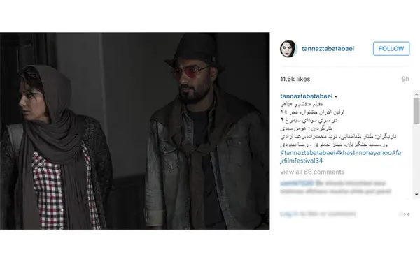 رکنا: طناز طباطبایی در پست جدید خود در اینستاگرامش عکسی از فیلم جدیدی که بازی کرده است گذاشت.