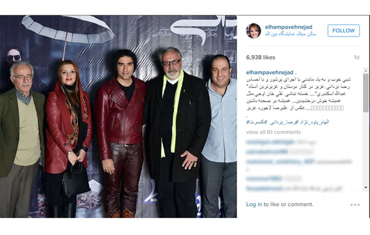 رکنا: الهام پاوه نژاد در عکس جدیدی که منتشر کرد از رضا یزدانی و کنسرتش تعریف و تمجید کرد.