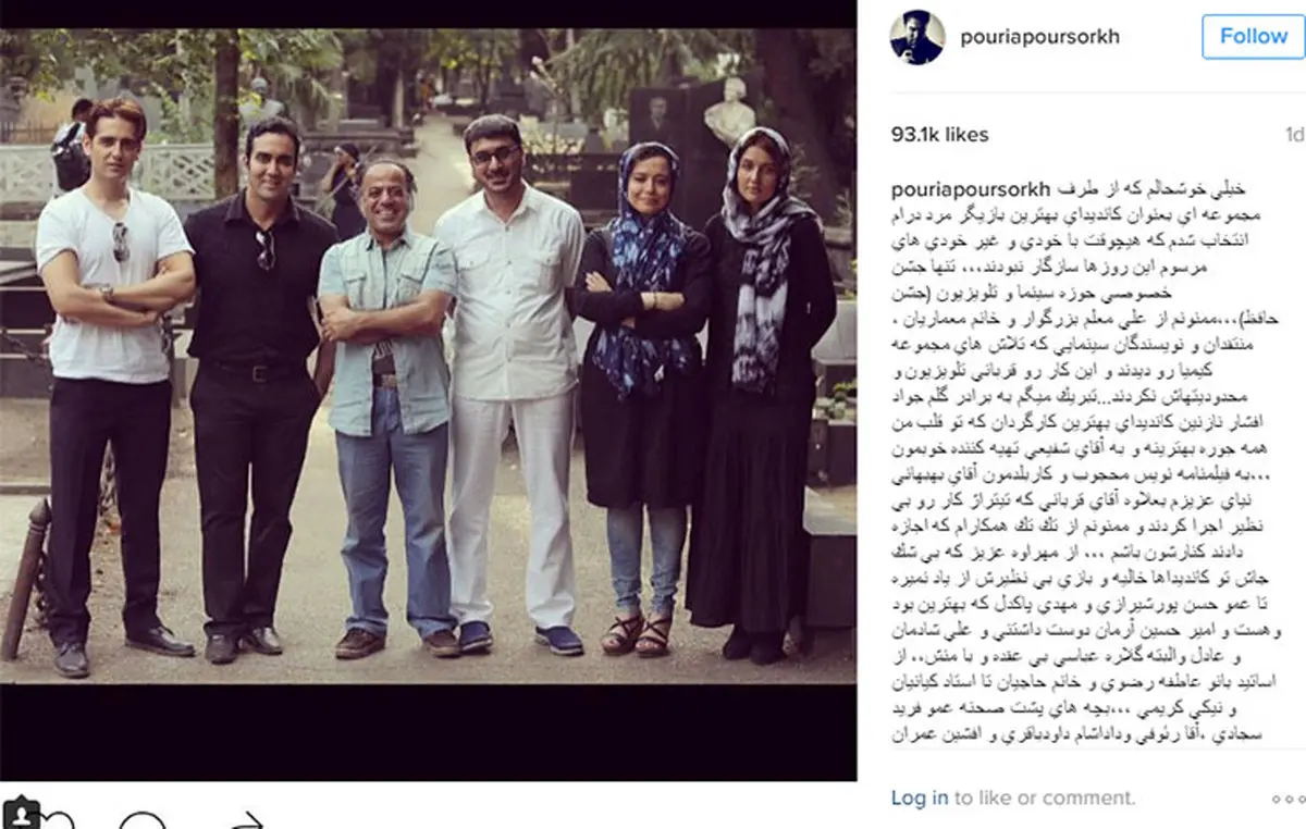 رکنا: پوریا پورسرخ به عنوان بهترین بازیگر مرد درام انتخاب شد و در اینستاگرام خود نوشت: