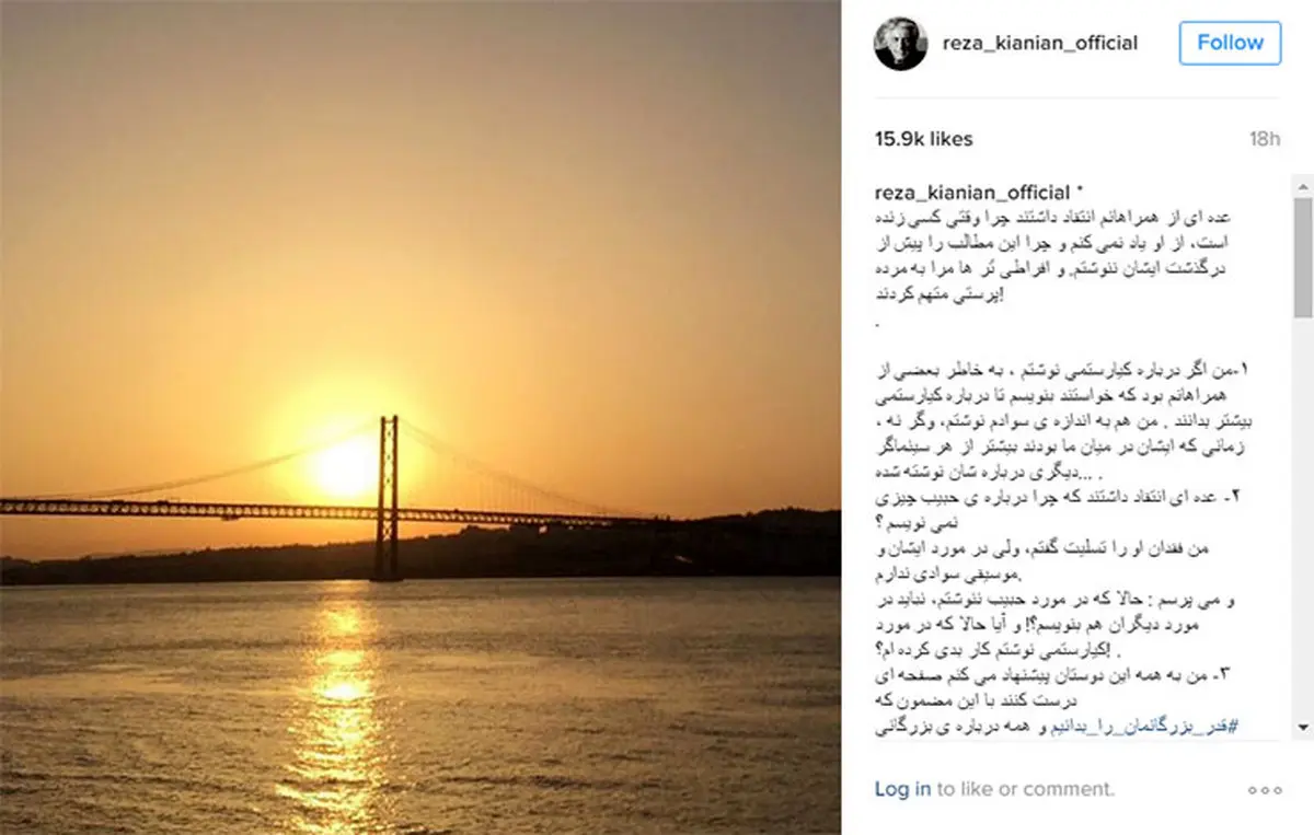 رکنا: رضا کیانیان در متنی که منتشر کرد حرف های نگفته خود را در خصوص عباس کیارستمی نوشت: